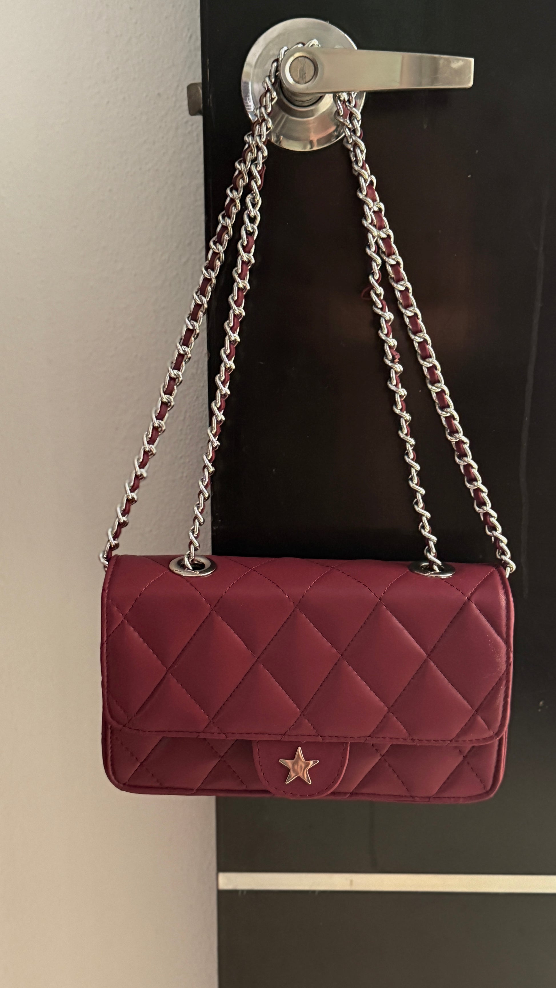 - Cadena fija entrelazada con piel sintética en el color del bolso, ideal para usar como bandolera o bandolera .